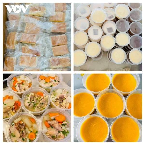 Hơn 2 tuần nay, căn bếp nhỏ của gia đình chị Đan Hà ở Quận 7 luôn đỏ lửa từ 5 giờ sáng để mỗi ngày nấu hàng trăm suất ăn tặng y bác sĩ, bệnh nhân ở bệnh viện dã chiến, bệnh viện điều trị Covid-19. Chỉ cần các bác sĩ nhắn “cần suất ăn cho nhân viên y tế”, chị Hà ngay lập tức lên kế hoạch, mua nguyên liệu nấu các phần bún, súp,…theo yêu cầu. Mỗi ngày, bếp còn có thêm 300 phần đồ ngọt cho bữa trưa, 100 phần cháo dinh dưỡng tặng các bệnh nhân nhi.
