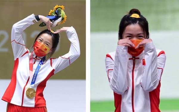 Phản ứng của Yang Qian khi nhận Huy chương Vàng trong nội dung 10m súng trường hơi nữ ngày 24/7/ 2021.