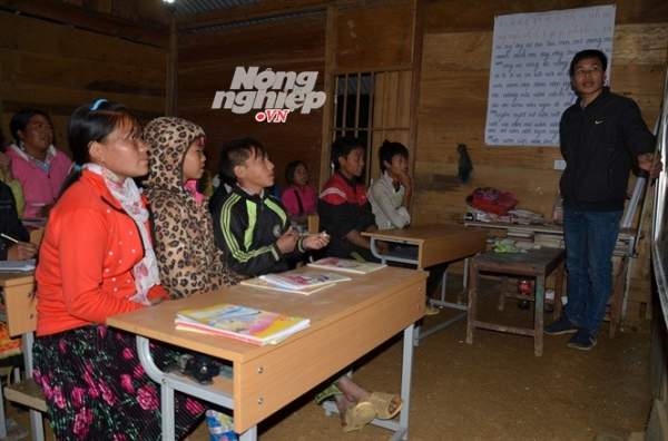 Lớp học đặc biệt này có 32 học sinh từ 10 tuổi đến 40-50 tuổi, phần lớn là nữ vì đơn giản mỗi buổi học được Hội phụ nữ xã cấp cho…10.000đ, còn phần ít là nam học, dù không được tiền nhưng họ vẫn muốn theo học để có vài con chữ dắt lưng khi ra ngoài xã, ngoài huyện. Thầy Huấn bảo, học được 14 buổi rồi mà vẫn còn 6 người chưa thể đọc được, lúng túng như gà mắc tóc mỗi khi thầy giáo gọi lên bảng.