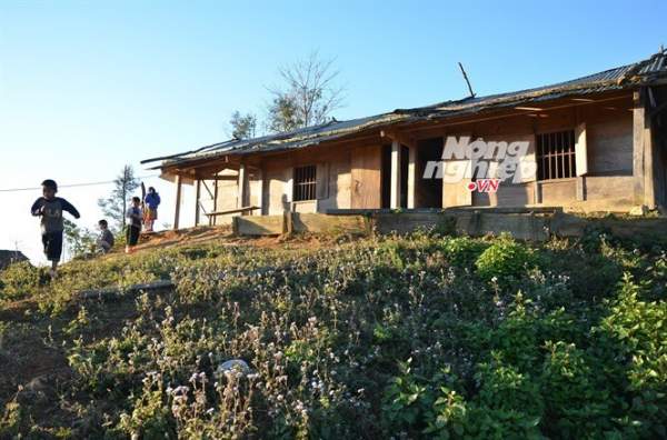 Sáng ra khi tôi vẫn còn rúc đầu sâu vào chiếc chăn bông vì ngại cái rét ở một nơi cao gần 2000m so với mặt nước biển thì tiếng kẻng sắt đã vang lên leng keng giục bước học sinh đến trường. Lắm đứa đến lớp còn địu cả em trên lưng vừa học bài vừa ru ngủ. Lúc này tôi mới có dịp quan sát kỹ, “trường cấp một” chỉ là mấy gian nhà tạm được thưng bằng ván gỗ, trên mái chèn đủ thứ cành cây để chống gió thổi bay mất.
