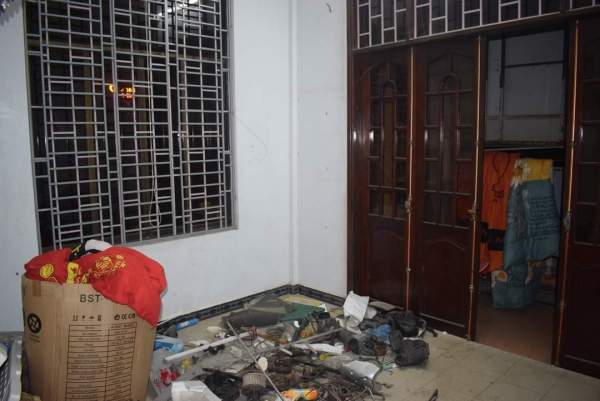 Bên trong căn nhà mà các đối tượng có lối sống lệch lạc thuê này là cảnh nhiều đồ đạc bề bộn, cùng một số dụng cụ sử dụng ma túy. Những dụng cụ này đã bị công an thu giữ.