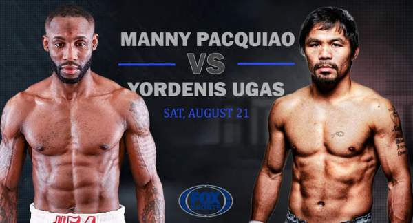 Sau đó, nhà vô địch WBA hạng bán trung Yordenis Ugas được lựa chọn làm đối thủ thay thế Errol thượng đài cùng Pacquiao. Ban đầu, Ugas được sắp xếp để đấu Fabian Maidana trong sự kiện phụ của trận đấu của Pacquiao và Errol. Pacquiao nhất trí với phương án này. Anh nói: "Tôi đồng ý thượng đài với Ugas ngày 21/8 để tranh đai vô địch WBA hạng bán trung".