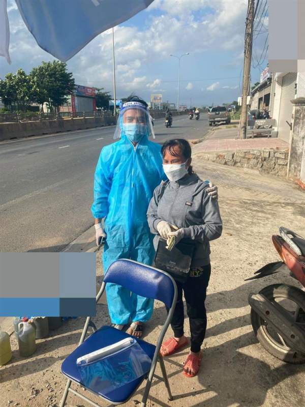 Sau đó chị gặp nhóm thiện nguyện của anh Đ.N.Đ., ở TP.Phan Thiết nên đã quyết định cùng nhau chia sẻ với bà con. Trong khi 3 anh em anh Đ. xuống đường phát đồ ăn gồm bánh mì, sữa, nước uống, xăng thì chị H. tặng mỗi người 500 ngàn đồng. Anh Đ. cho biết trên Sức khỏe và Đời sống, mỗi ngày nhóm anh chị phát khoảng 200-300 phần quà.