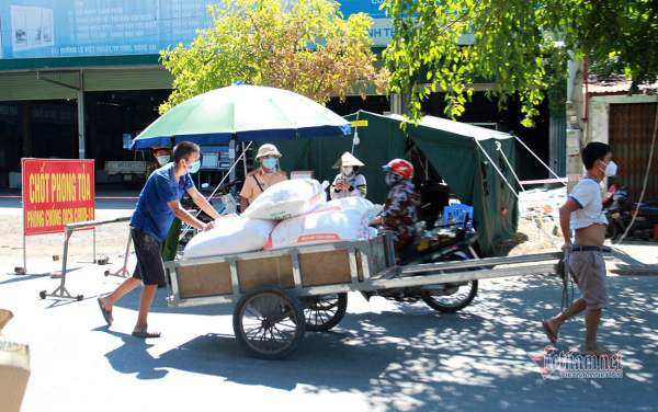 Người dân tập kết chở hàng hoá ở chốt kiểm dịch sáng nay